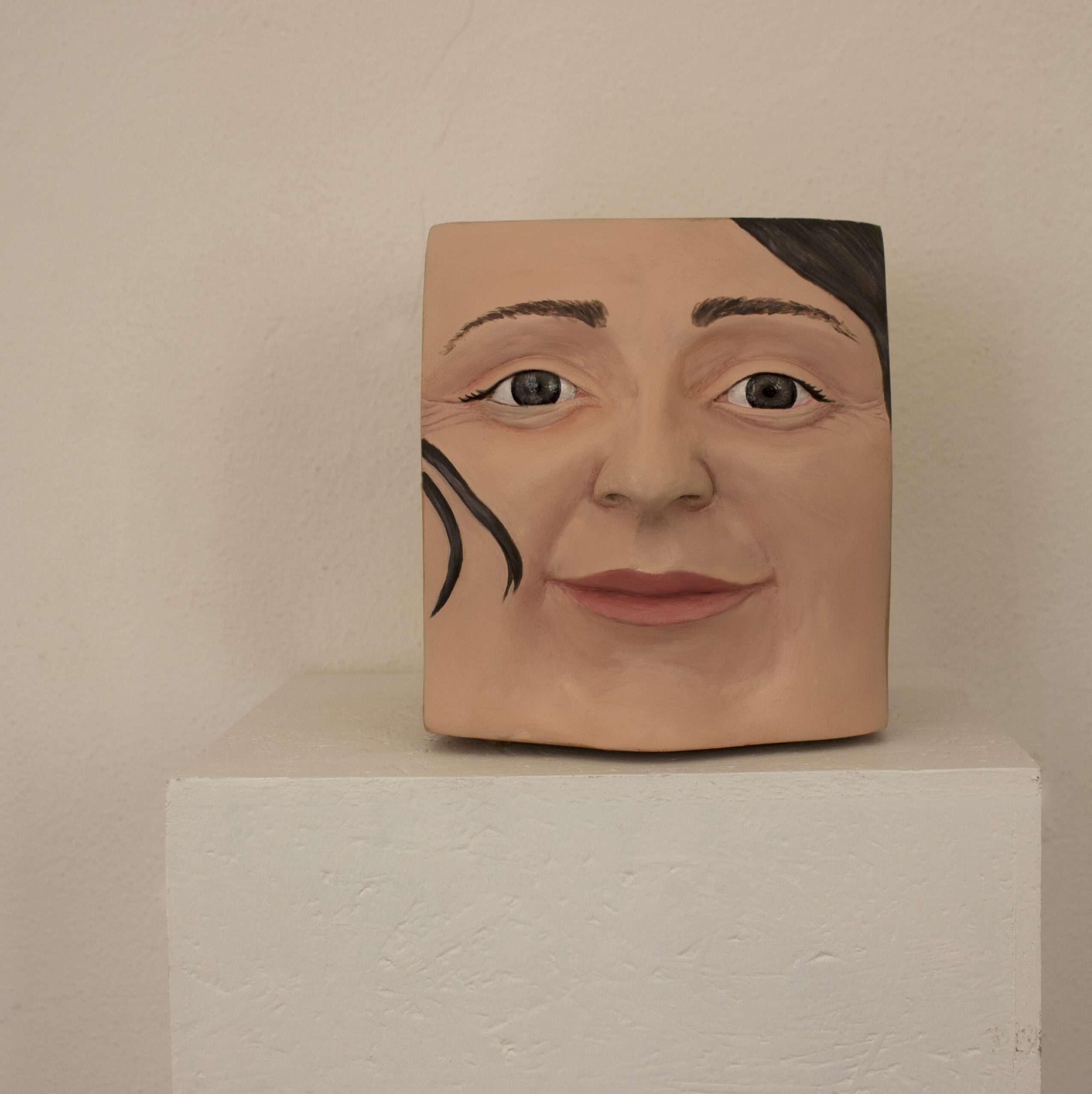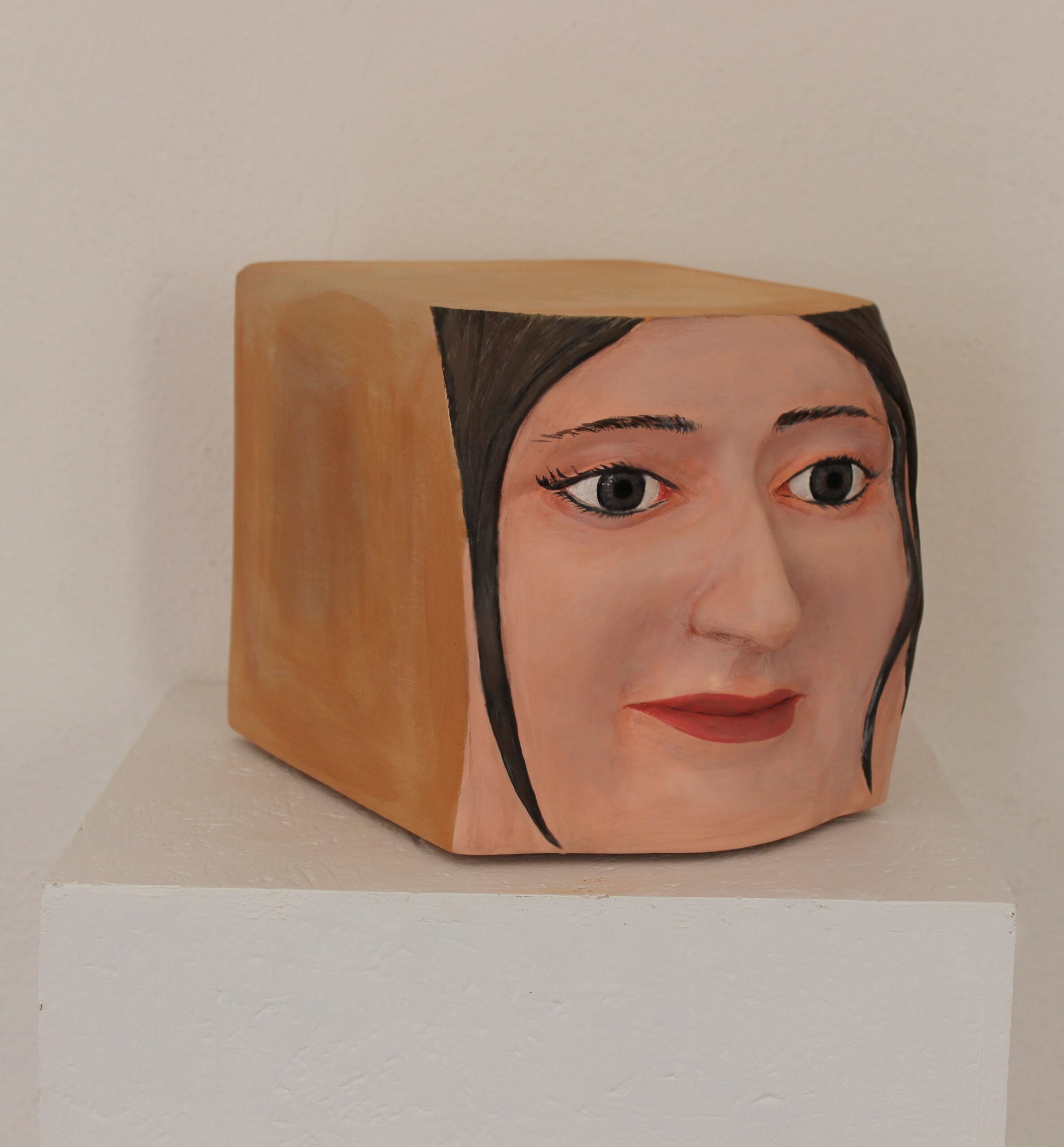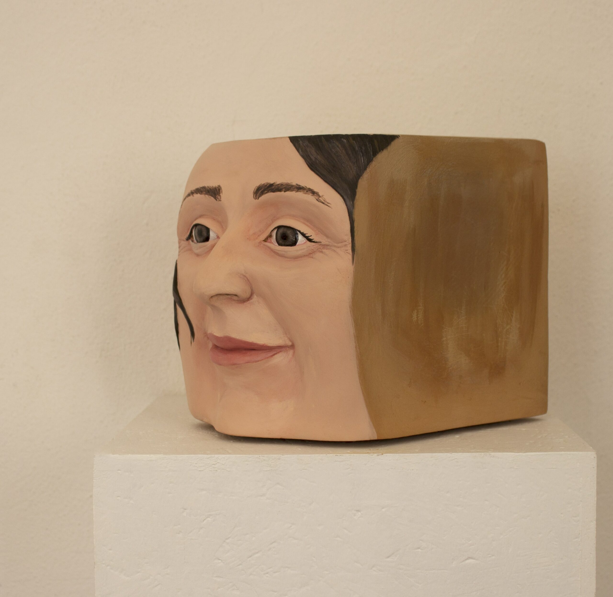 L’ampia sperimentazione artistica condotta, parte da una radice comune che consiste nella continua ricerca sul volto umano. Questa da origine a un variegato mondo multiforme, popolato da visi che vanno dal realismo all’astrazione, dal modellato puro al pittorico. Con anche peculiari variazioni sul tema. In particolare sono ormai una sua firma i volti inquadrati e ridotti in cubi di varie dimensioni, che fanno riferimento alla volontà di indagare le mille peculiarità del volto umano, nella sua sterminata varietà, verso l’assoluta unicità. Il viso racconta, attraverso la trasposizione in lineamenti e dettagli, la vita e lo spirito di ogni individuo, rappresentando una miniera inesauribile di informazioni che ci permettono di scoprire, o anche solo intuire, la mutevole e composita identità di ognuno. Il volto come esperienza visibile dell’animo, e come messaggio di unicità nella varietà. La rielaborazione del primo piano fotografico si presta come interessante via di rappresentazione di questa singolarità, che unita all’immediatezza del modellato genera i volti cubici, posti allo spettatore quali curiose istantanee fotografiche. Come delle Polaroid in tre dimensioni capaci di fermare un momento in una viso modellato.